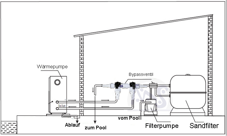Bypass für Wärmepumpe mit Schlauchanschluß 32/38 mm