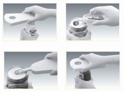 Flaschen, Gläser und Dosen mit Lippen-Verschluss öffnen.