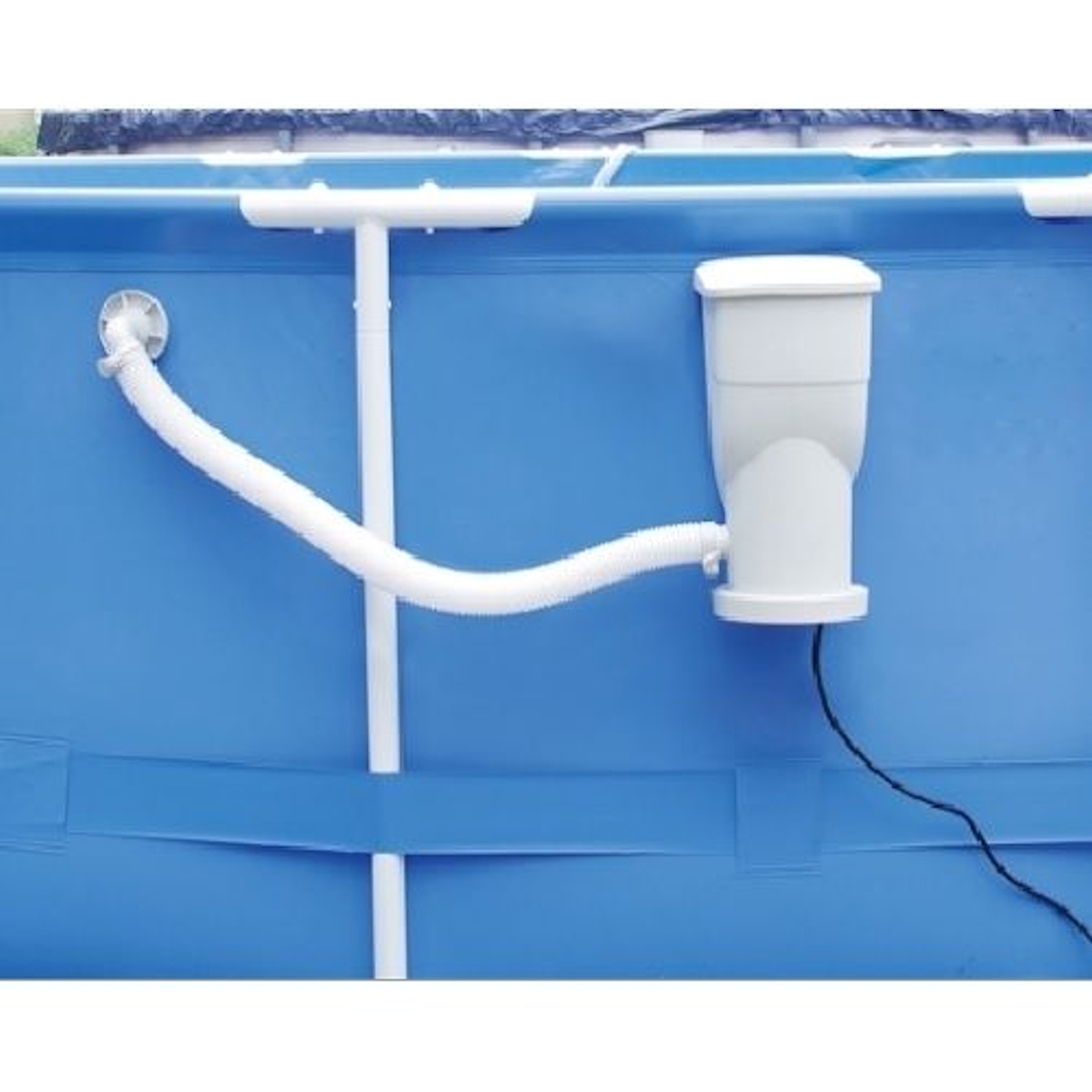 Mit einem Schlauch wird der Filter am Pool angeschlossen.