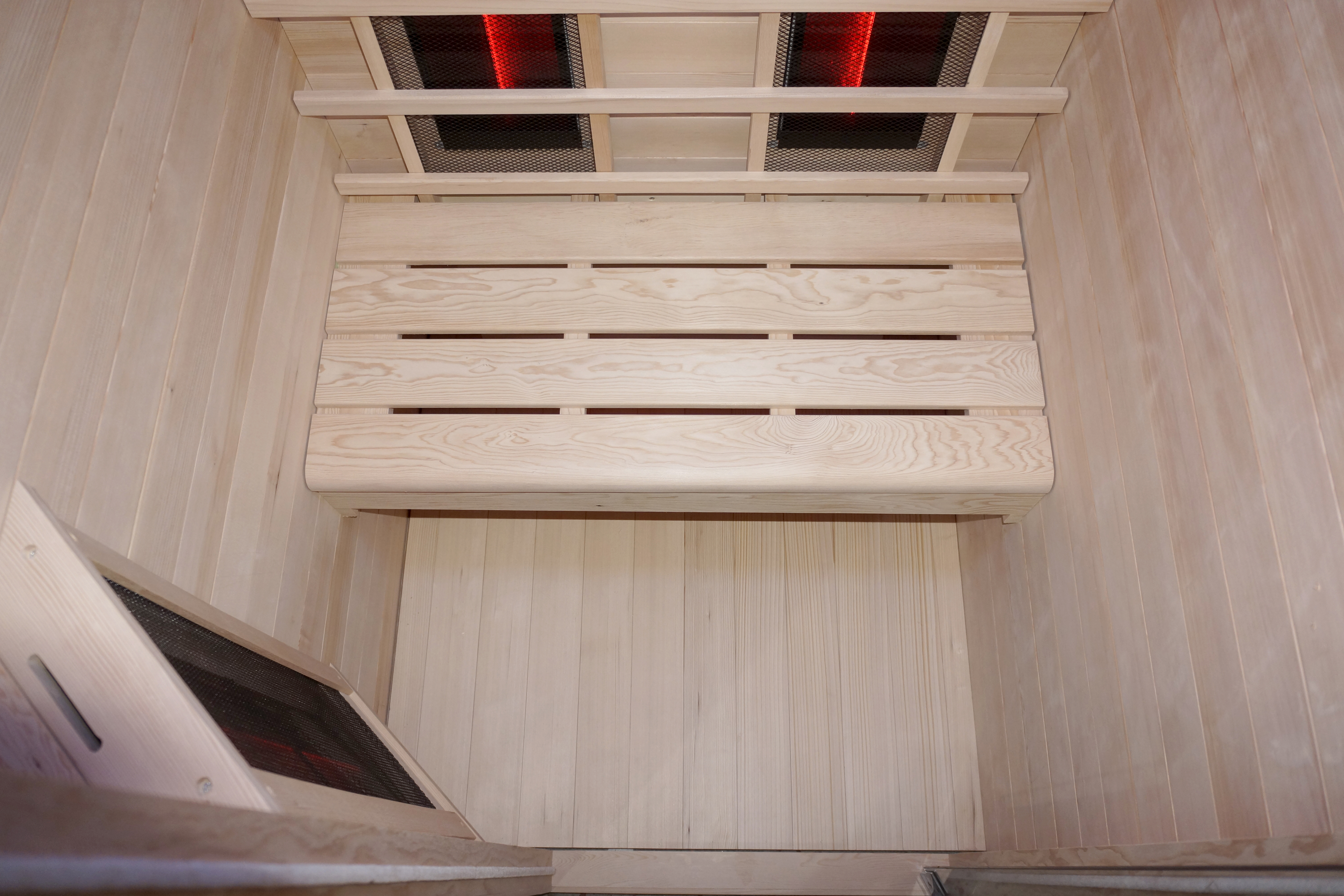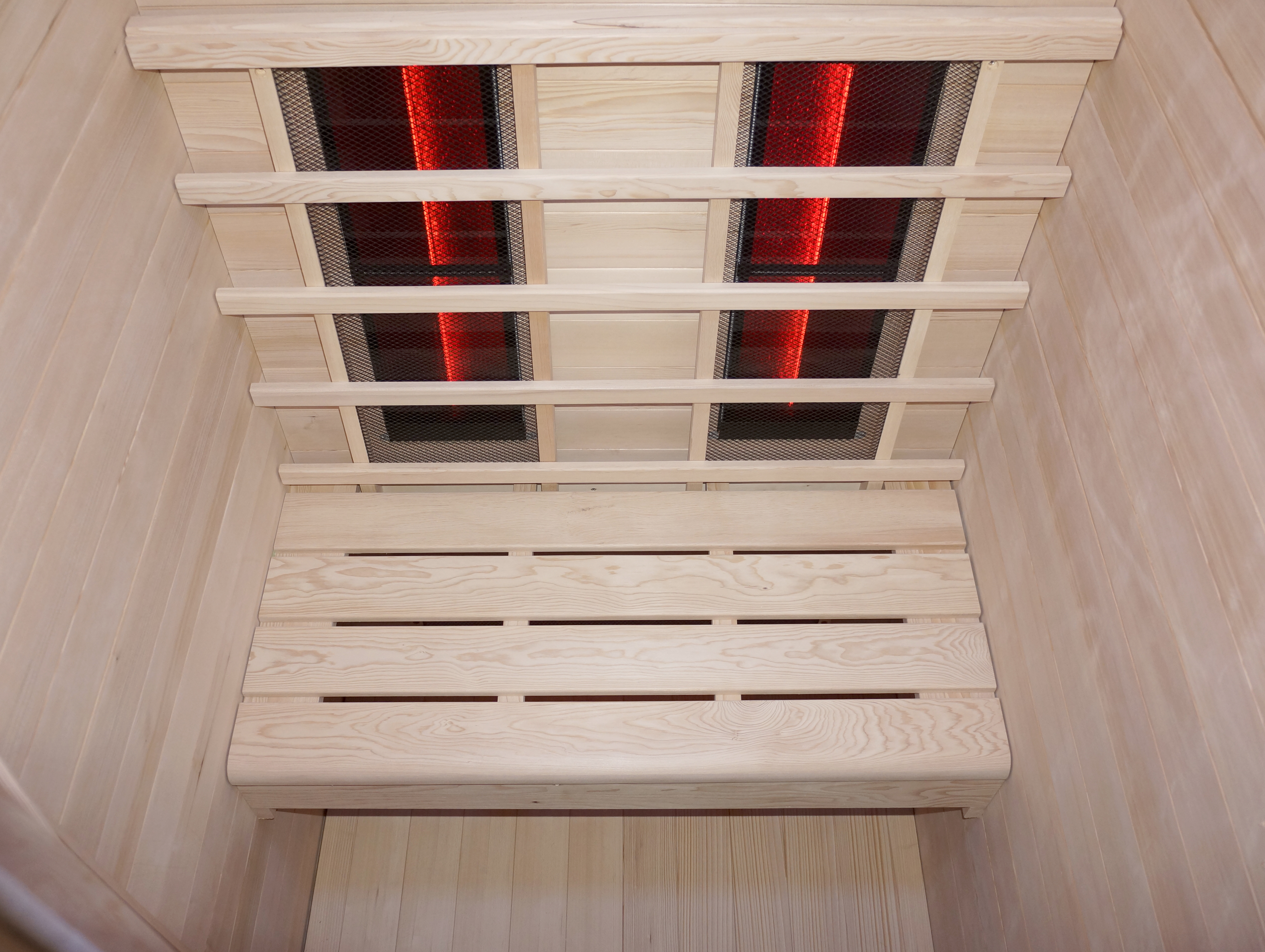 Die Infrarotkabine besteht aus kanadischem Hemlock. Diese starke,