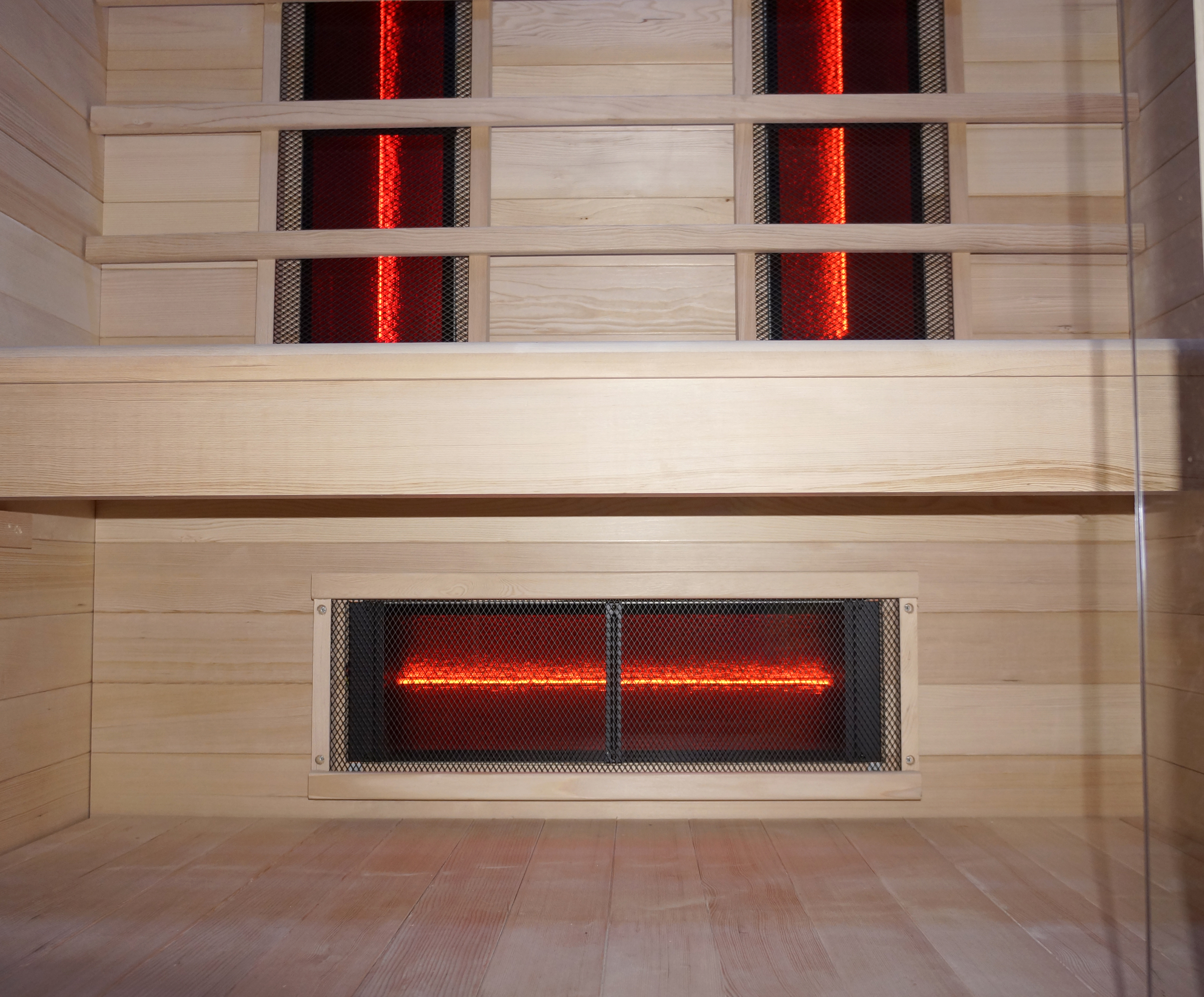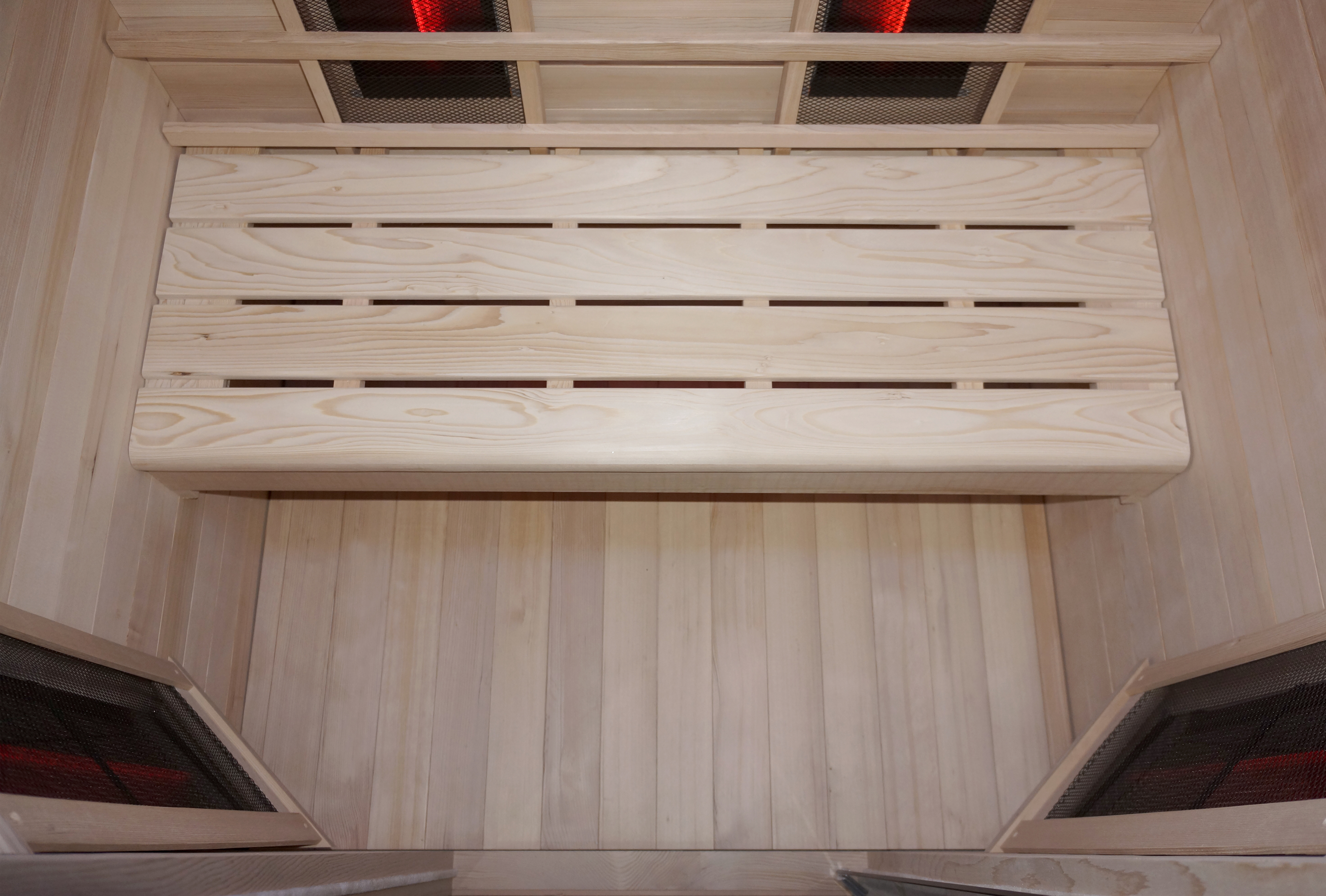 Die Infrarotkabine besteht aus kanadischem Hemlock. Diese starke,