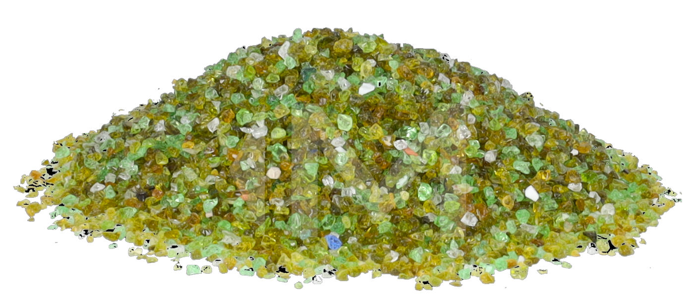 das aus grünem Recyclingglas gewonnen wird.