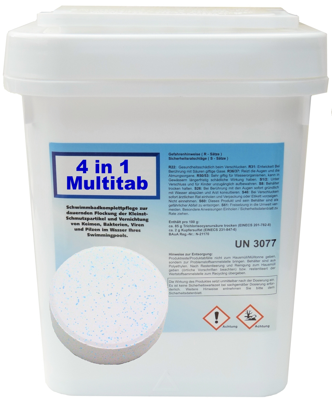 Geben Sie etwa eine Tablette 200 g für 10 - 14 Tage in 30 m³ Wasser.
