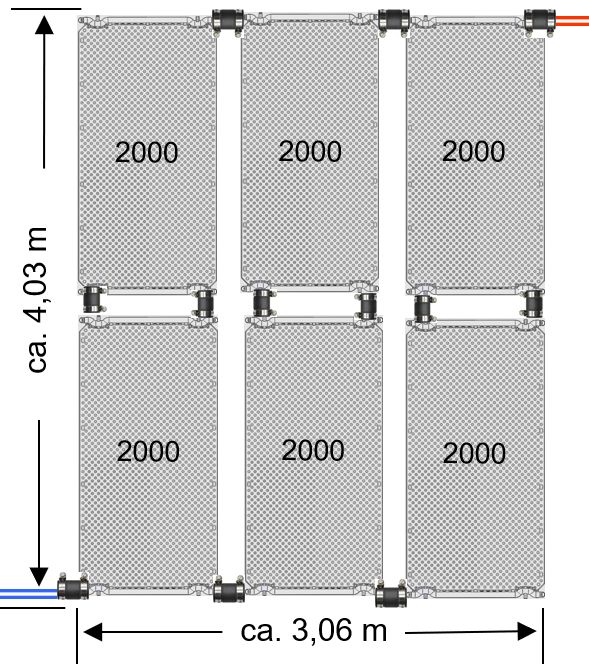 Anschluß der einzelnen Absorberreihen nach Tichelmann (gleiche Leitungswege für jede Reihe).