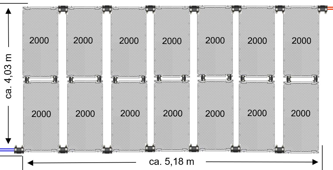 Anschluß der einzelnen Absorberreihen nach Tichelmann (gleiche Leitungswege für jede Reihe).