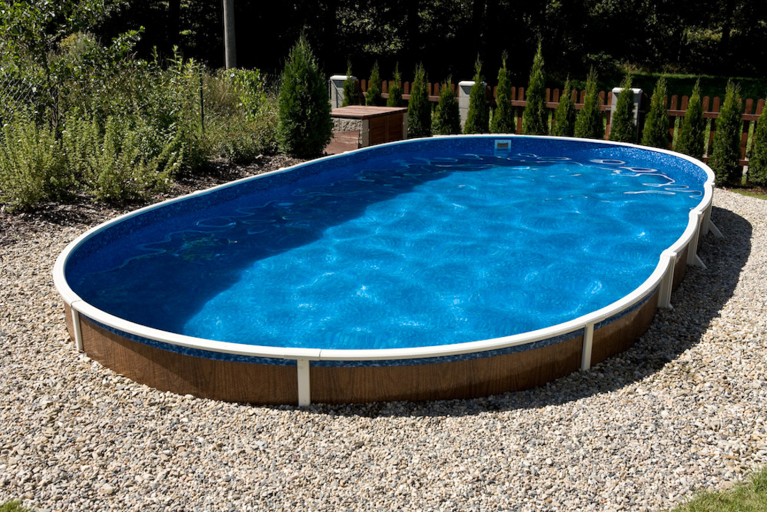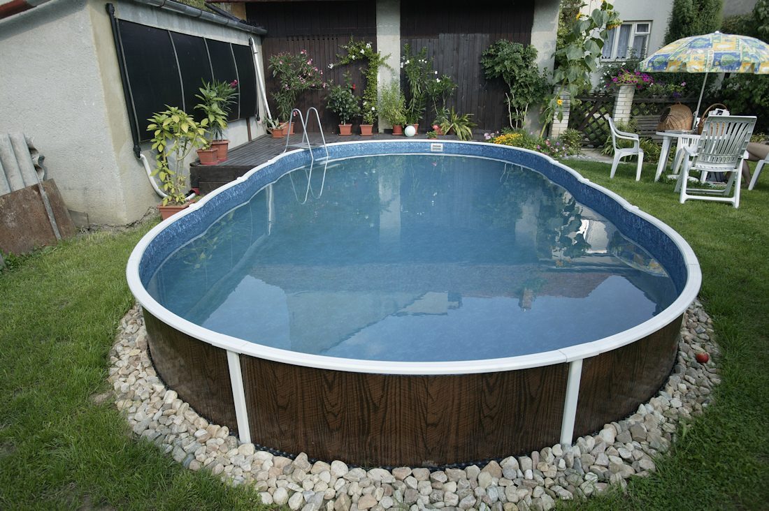 Durch die mitgelieferte Seitenstützkonstruktion kann der Oval-Pool frei aufgestellt werden.