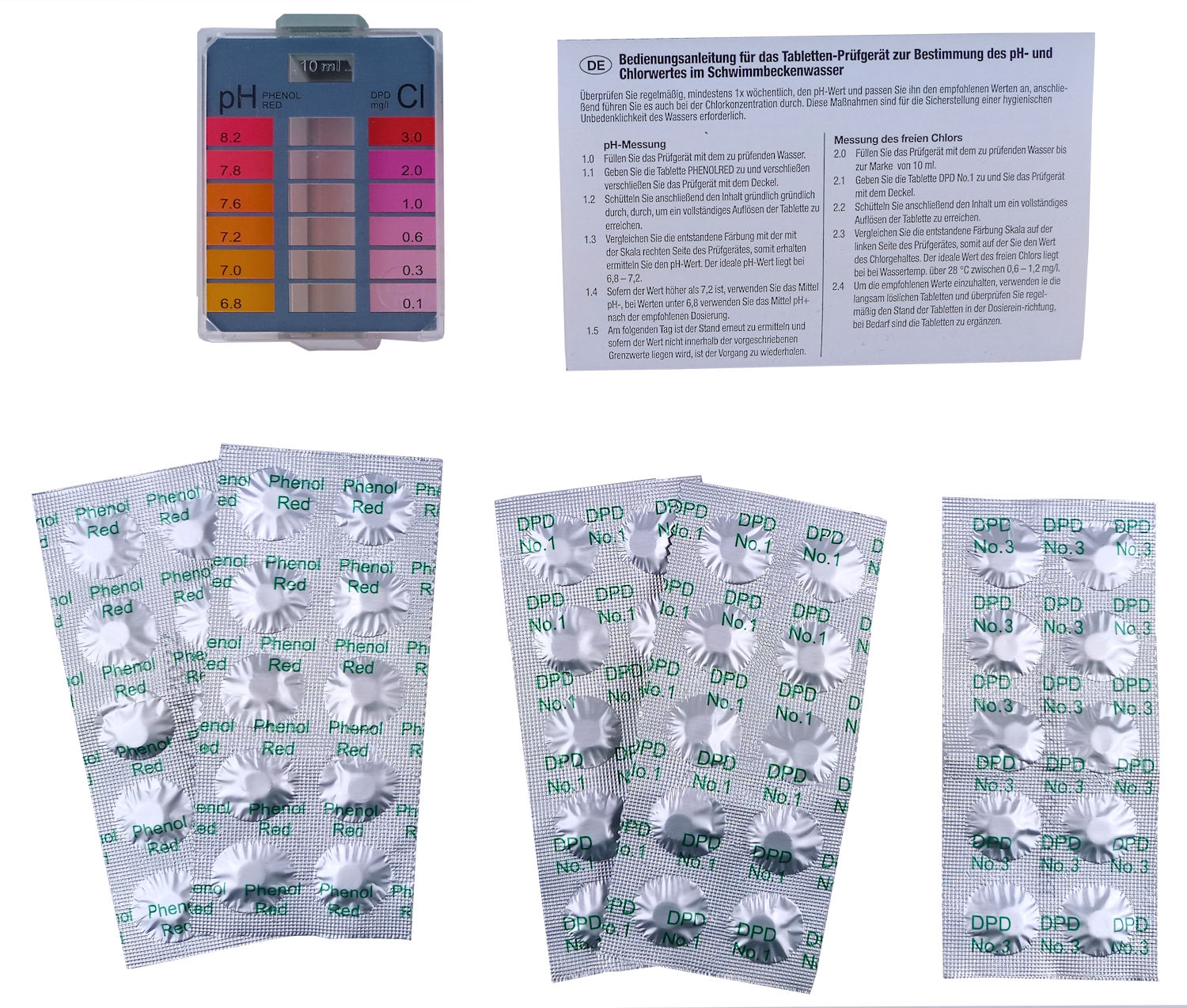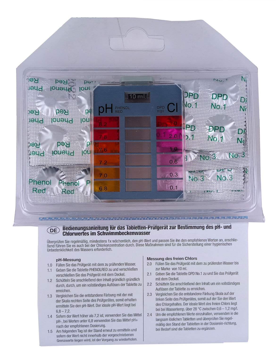 Produktinformationen "Pooltester Mini mit Tabletten für Chlor und pH"