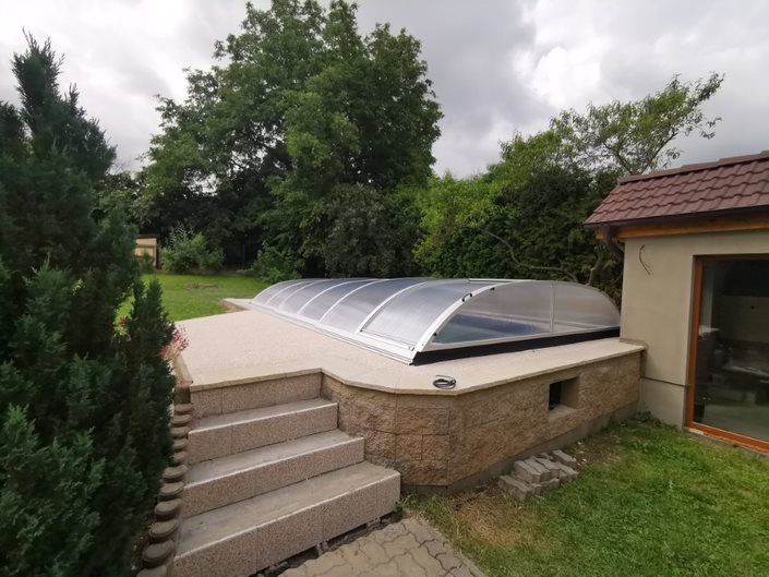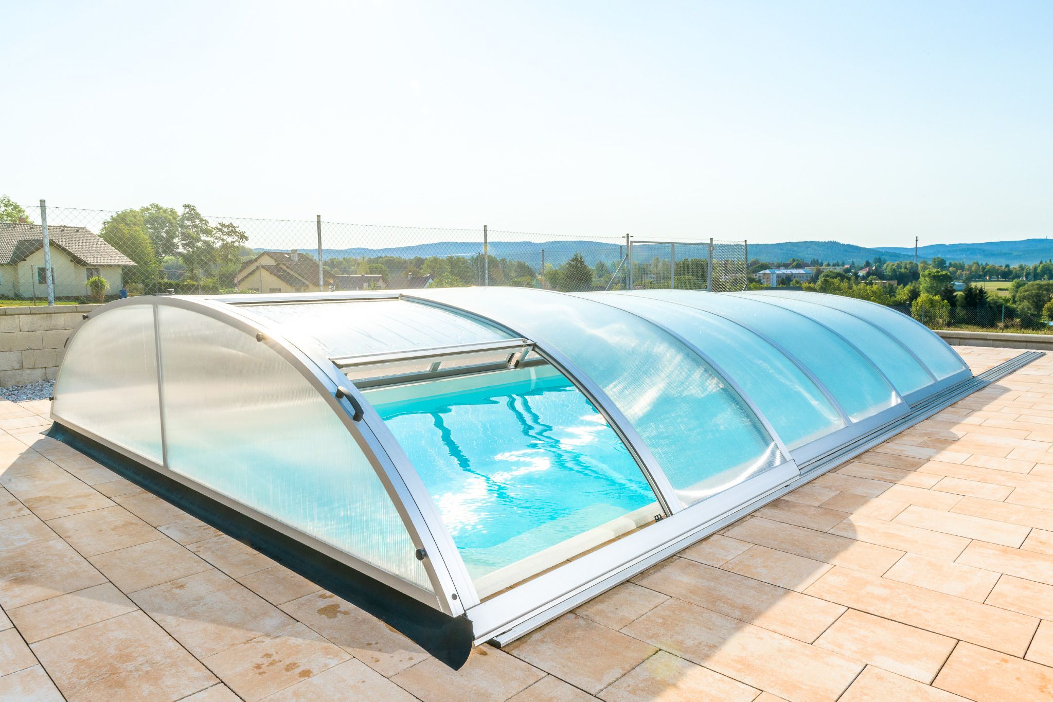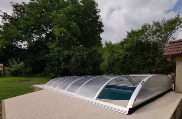 Unsere Schwimmbadüberdachung Marlos Compact ist preislich eine der
