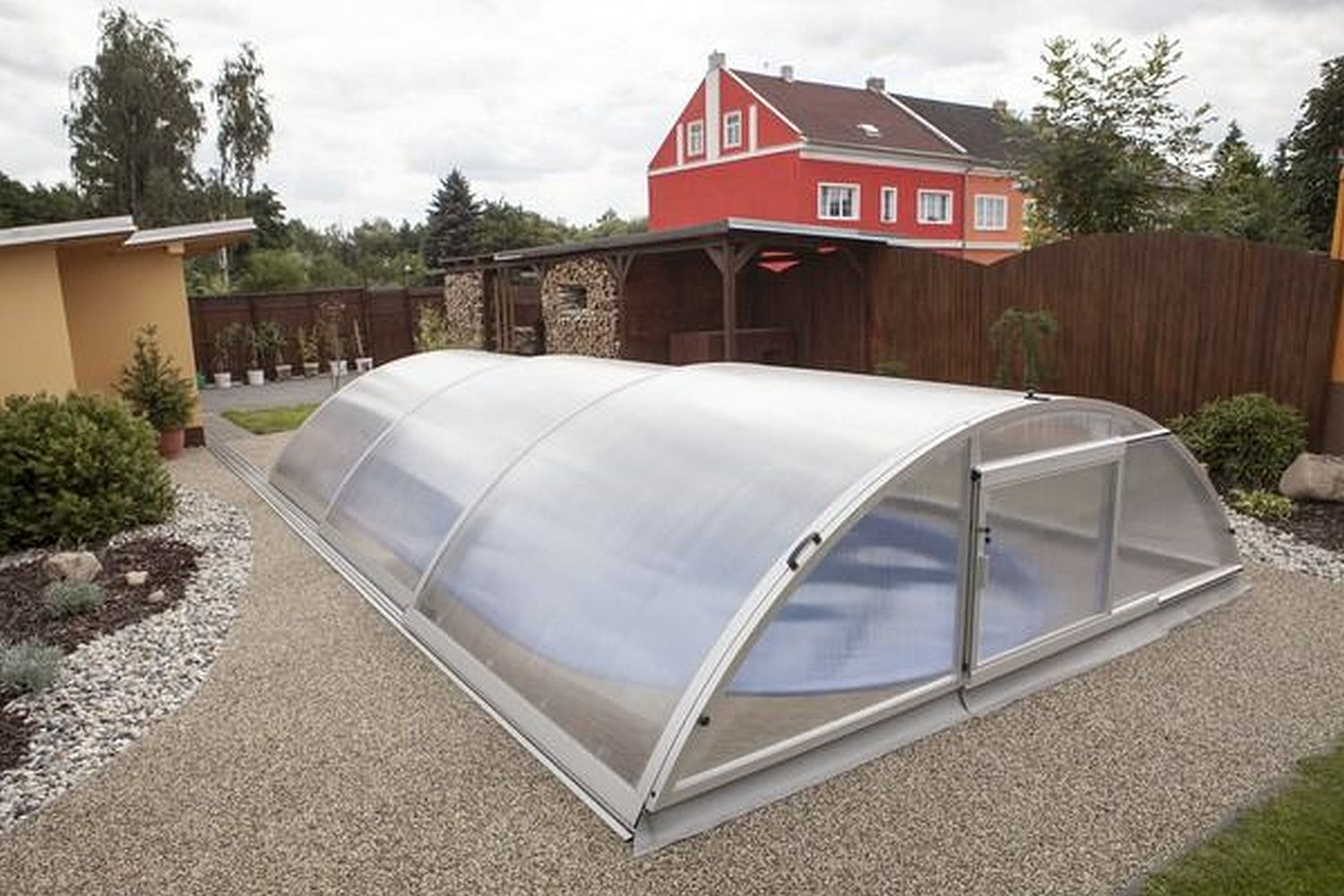Unsere Schwimmbadüberdachung Marlos ist preislich eine der