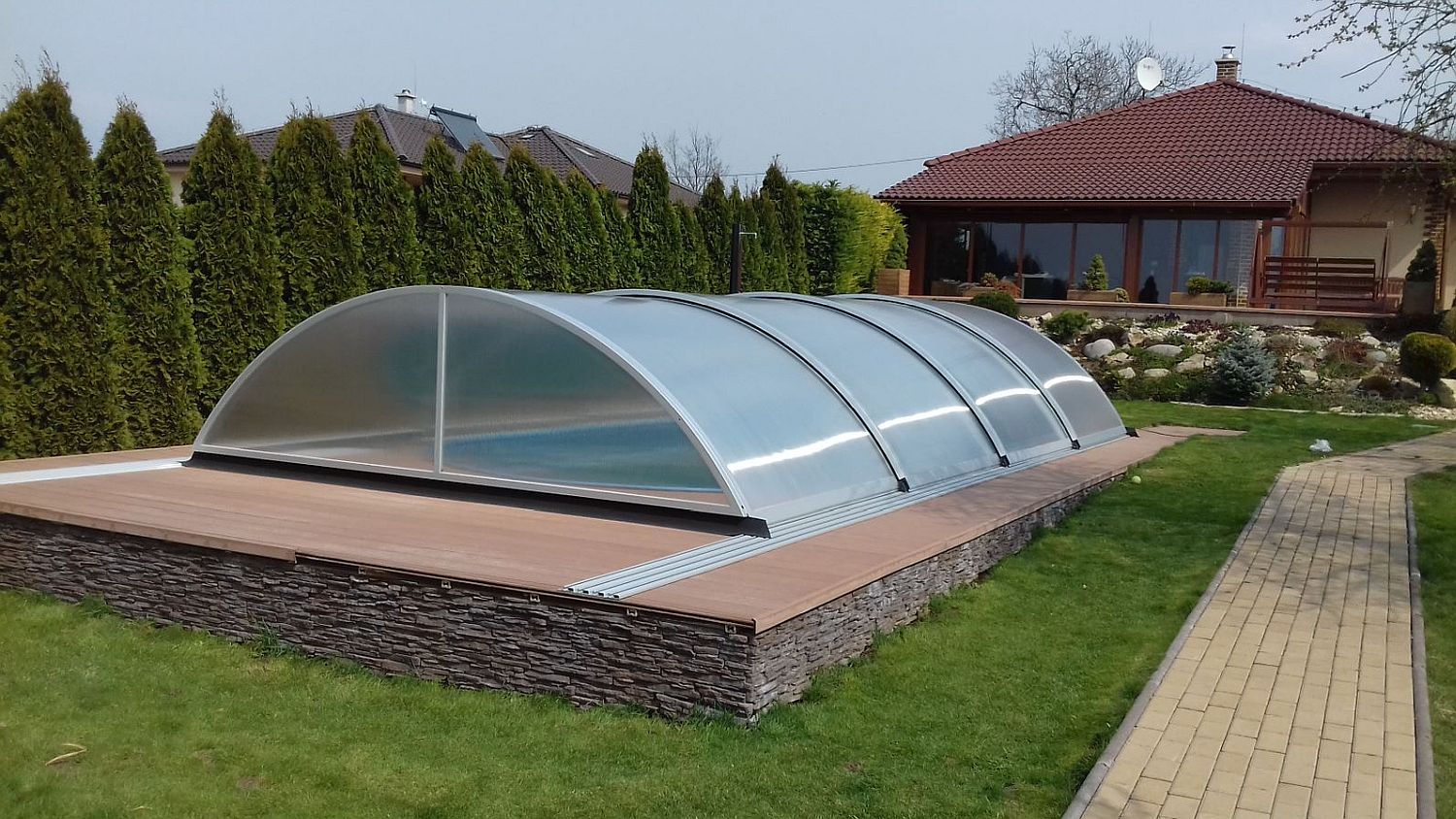 Unsere Schwimmbadüberdachung Marlos ist preislich eine der