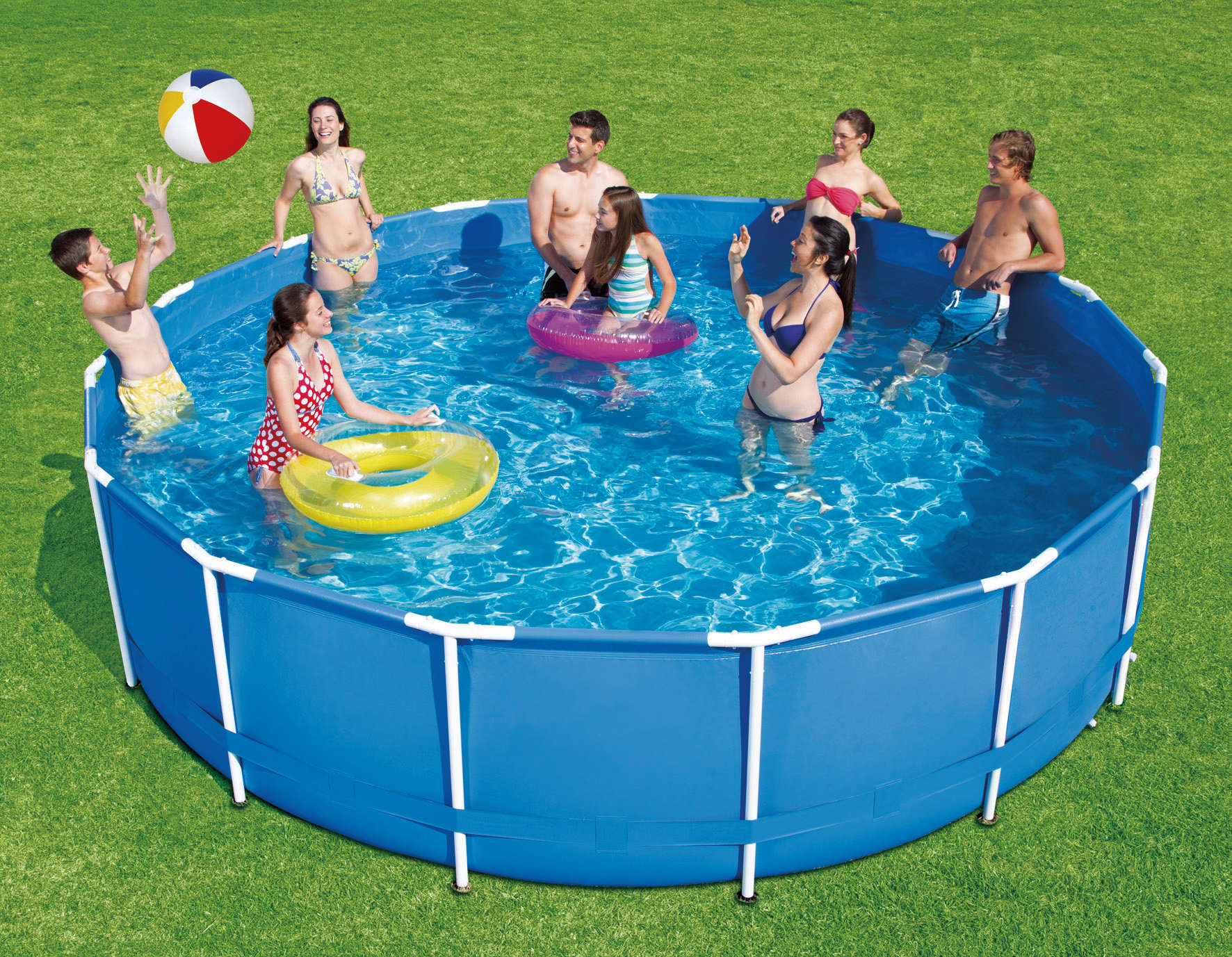 Der Frame-Pool besteht aus pulverbeschichteten Metallrohren