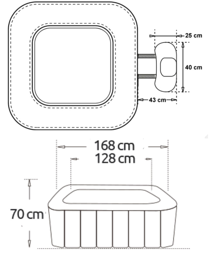 Dieser aufblasbare Spa ist dank seiner quadratischen Form