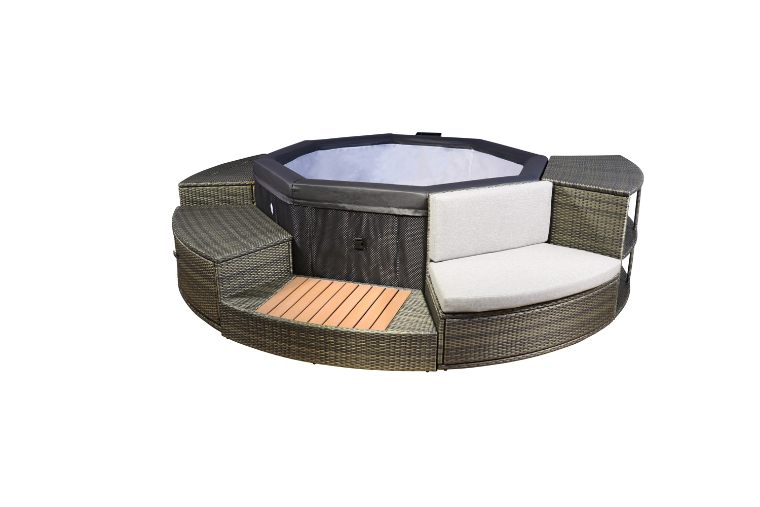 Bis zu den Schultern eingetaucht, findet jeder bequem seinen Platz in diesem halbsteifen Spa.
