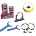 Zubehör für die Istallation von PVC-Rohr, Kleber, Reiniger, Schellen und mehr