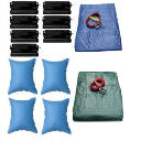 10 Stück Poolkissen Luftkissen 1,15 x 1,13 m für AbdeckplaneDieses luftgefüllte Kissen aus stabilem PVCverhindert das Absinken der Winterplane auf IhremSchwimmbecken durch mittig angesammeltesRegenwasser oder Schmelzwasser von Schnee.Somit wird vermieden, dass die Plane durch einensog. Wassersack in den Pool gerissen wird. mit 2 Ösen zum FixierenMaße aufgeblasen:L = ca. 1,15 mB = ca. 1,13 mH = ca. 70 cm
