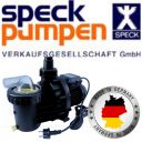 Filterpumpe Speck PP 9 Made in Germany Speck baut seit vielen Jahren bewährte Blockpumpen mit integriertem Fasernfänger. Balg-Gleitringdichtung auf Kunststoff-Laufradnabe montiert. Motor- bzw. Pumpenwelle kommt mit dem Schwimmbadwasser nicht in Berührung! Elektrische Trennung.Die selbstsaugende Speck-Schwimmbadpumpe mit dem Kunstoff-Gehäuse darf max. 1 m oberhalb oder max. 3 m unterhalb des Wasserspiegels aufgestellt werden.
