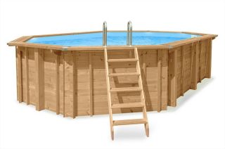 Holzpool Komplett-Set PLUS BALI oval 8,40 m x 4,90 m inkl. ZubehörDas INTERLINE Komplettset "Bali" ist ein qualitativ hochwertiger Luxuspool für die ganze Familie. Dieser Pool ist sowohl als Aufbau- als auch als Erdeinbau lieferbar. Mit einem INTERLINE Bali-Pool haben Sie jahrelanges, sorgloses Badevergnügen. INTERLINE hat an Holz "Nordische Kiefer" (Holz mit Klasse 4 Imprägnierung!) für den Pool gewählt. Der Pool ist dank einfachem und robustem Konstruktions-System leicht aufzubauen. Der Hersteller garantiert jahrelangen Badegenuss durch Haltbarkeit der Klasse 4. Selbst in einer feuchten Umgebung bleibt das Holz über mehrere Jahre in einem optimalen Zustand. Durch die dauerhafte Behandlung des Holzes ist es nicht notwendig, das Holz neu zu streichen, was Arbeit und Kosten spart, und auch der Umwelt gut tut. Darüber hinaus ist das Holz FSC-zertifiziert. Die Beckenwände bieten mit einer Stärke von 45 mm eine einzigartige Isolierung und lange Badesaison. Eine 0,7 mm starke, hochwertige Folie ist inbegriffen, um die perfekte Ausstattung Ihres Pools abzurunden. Der Pool wird durch einfaches stapeln von vorkonfektionierten Holzbohlen aufgebaut. Die Enden der Balken sind schön verarbeitet, dadurch entsteht ein schöner Anblick auf die Seiten des Pools.