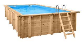 Aus robuster nordischer Kiefer, dieser Pool kann auch frei aufgestellt werden.